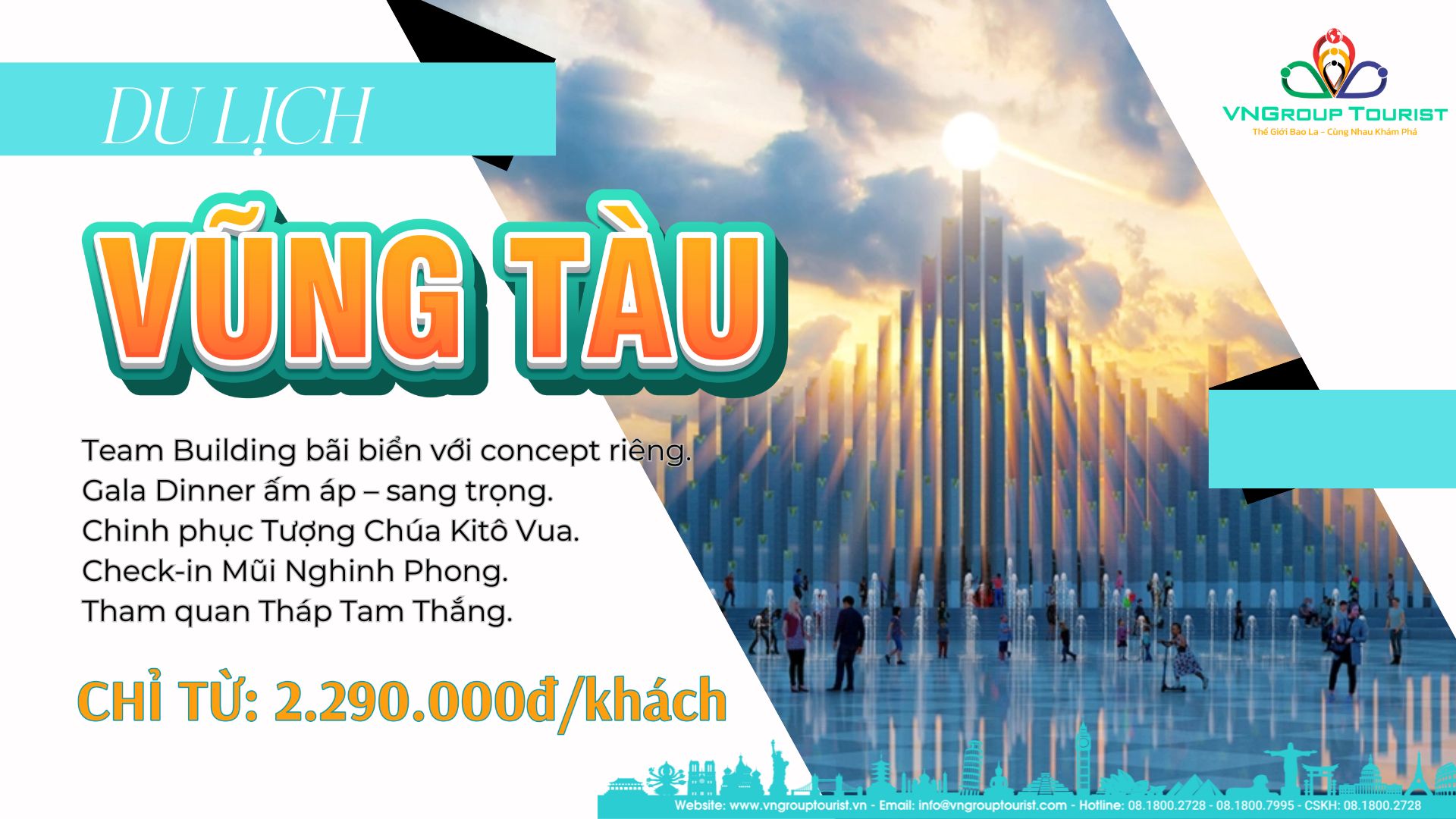 SÁNG: 05:30: Xe và Hướng dẫn viên VNGROUP TOURIST đón Quý khách tại điểm hẹn, khởi hành đi Vũng Tàu. Dừng chân Long Thành dùng điểm tâm sáng tại nhà hàng Song Trang/Mekong, thực đơn đa dạng: hủ tiếu sườn, bánh canh, mì sườn… kèm cà phê hoặc sữa đậu nành. Tham quan Trại Cừu Suối Nghệ – check-in cùng những chú cừu trắng tinh khôi, lưu lại những bức ảnh dễ thương. Trên xe, HDV khuấy động không khí bằng mini game vui nhộn với nhiều phần quà hấp dẫn. Viếng Thích Ca Phật Đài, chiêm bái tượng Phật trắng uy nghi giữa lòng thành phố biển. TRƯA: 11:30: Dùng bữa trưa tại nhà hàng địa phương. Nhận phòng khách sạn, nghỉ ngơi hoặc tắm biển. 15:00: Tham gia Team Building bãi biển với chủ đề “BẬT SỨC – BỨT PHÁ”: Xóa nhòa khoảng cách – Kết nối thành viên. Truyền cảm hứng teamwork – Hướng đến mục tiêu chung. Khẳng định văn hóa doanh nghiệp – Niềm tự hào tập thể. Giải thưởng hấp dẫn: 🥇 Giải Nhất – 1 thùng bia Tiger 🥈 Giải Nhì – 1 thùng nước ngọt Tự do tắm biển, nghỉ ngơi. TỐI: 18:30: Dùng bữa tối với thực đơn hải sản đặc sắc Vũng Tàu. Tham gia GALA DINNER: chương trình gắn kết đầy cảm xúc với văn nghệ, trò chơi, bốc thăm may mắn và quà tặng giá trị. Kết thúc chương trình, về khách sạn nghỉ ngơi. Tự do dạo biển, ngắm Vũng Tàu về đêm lãng mạn.