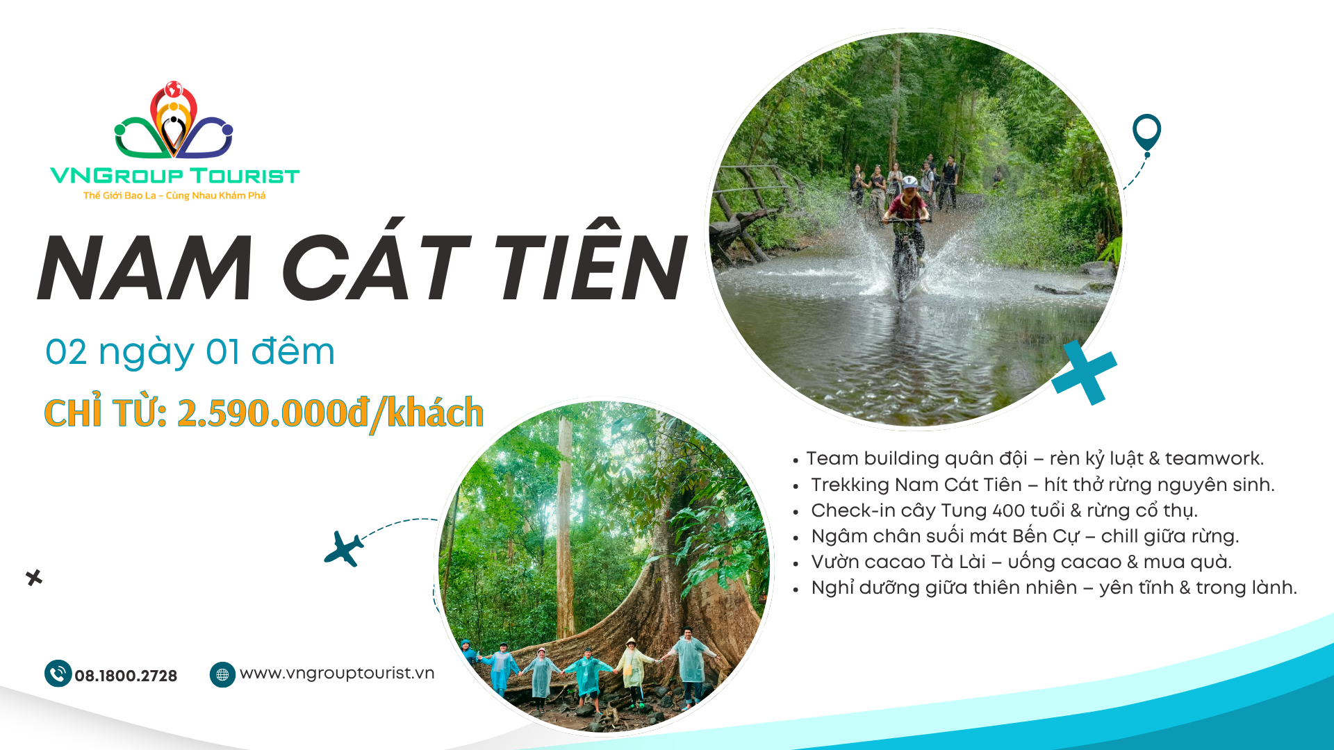 SÁNG: Đoàn tập trung tại điểm hẹn, khởi hành đi Khu du lịch Nam Cát Tiên. Quý khách tự túc ăn sáng trước khi khởi hành. Trên đường đi, HDV giới thiệu và thuyết minh về các địa danh đoàn đi qua, tổ chức hoạt náo nhẹ trên xe. TRƯA: Đoàn đến Nam Cát Tiên, dùng cơm trưa gia đình tại nhà hàng địa phương. Sau bữa trưa, quý khách di chuyển bằng phà lớn qua Rừng Quốc Gia, nhận phòng nghỉ ngơi – thư giãn. Tham gia chương trình TEAMBUILDING đặc biệt mang phong cách quân đội – rèn luyện thể lực, sự nhanh nhẹn và tinh thần đồng đội. Nội dung Team Building: Khởi động – Chia đội – Bản lĩnh đội trưởng: Các thành viên được chia đội ngẫu nhiên, cùng chọn người đội trưởng dẫn dắt hành trình. Hoạt động đồng đội: Cùng sáng tạo lá cờ đội – biểu tượng tinh thần của mỗi nhóm. Tham gia chuỗi thử thách vận động đến từ Ban Tổ Chức. Gắn kết, phối hợp, và bùng nổ năng lượng qua các trò chơi vui nhộn, hấp dẫn. Kết thúc: Tổng kết và công bố đội thắng cuộc. Sau chương trình, đoàn tự do khám phá các dịch vụ tại khu du lịch. TỐI: Đoàn tập trung tại sảnh nhà hàng tham dự GALA DINNER. Thưởng thức ẩm thực đặc trưng vùng núi rừng, hòa mình vào những điệu múa dân tộc và không khí sôi động. Cùng nhau giao lưu, chia sẻ, tri ân trong không gian ấm cúng và đầy ý nghĩa. Kết thúc chương trình, đoàn nghỉ đêm tại KDL Nam Cát Tiên.