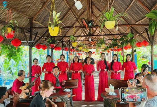 SÁNG: We pick up guests at several hotels; your hotel might be the first, so please be ready by 08:00a.m. Leave the hustle and bustle of Hồ Chí Minh City behind and embark on a scenic 1.5-hour journey to the charming town of Mỹ Tho, with a stop along the way for toilet and refreshment. • Upon arrival, step aboard a motorboat and immerse yourself in the breathtaking beauty of the Mekong River as we cruise along its picturesque canals and waterways, taking in stunning views of the legendary Dragon, Unicorn, Turtle, and Phoenix Islands • As we cross the river to the Bến Tre Village, we'll make a stop at a traditional workshop where you can witness the step-by-step processing of making coconut candy, honey farming, and more, while indulging in some delicious samples and enjoying the sounds of traditional music. • Experience the charm of local life by taking a peaceful sampan ride along the shady, breezy canal, rowed by friendly locals. Afterward, hop on a Xe Lôi - a type of local transportation - to explore the villages. TRƯA: Enjoy a delicious Vietnamese 5-course set menu for lunch at a riverside restaurant. Please inform us in advance if you have any dietary restrictions. • After that, take some time to unwind and soak up the serene ambiance of a typical Mekong Delta garden, or explore the charming village on a leisurely bicycle ride. • Embark on a scenic boat trip through the picturesque canals shaded by water coconut trees, as we make our way back to the Mỹ Tho pier. • Visit the enchanting Vĩnh Tràng Pagoda, a unique blend of Vietnamese, Chinese, and Cambodian architectural styles. Home to many intricate Buddhist statues and carvings, it's a must-visit destination for those interested in cultural and religious sites. TỐI: Enjoy a comfortable and relaxing 1.5-hour transfer back to Hồ Chí Minh City, reflecting on the unforgettable experiences of your day in the Mekong Delta. We'll drop you back to pick-up point or somewhere in city center as your request.